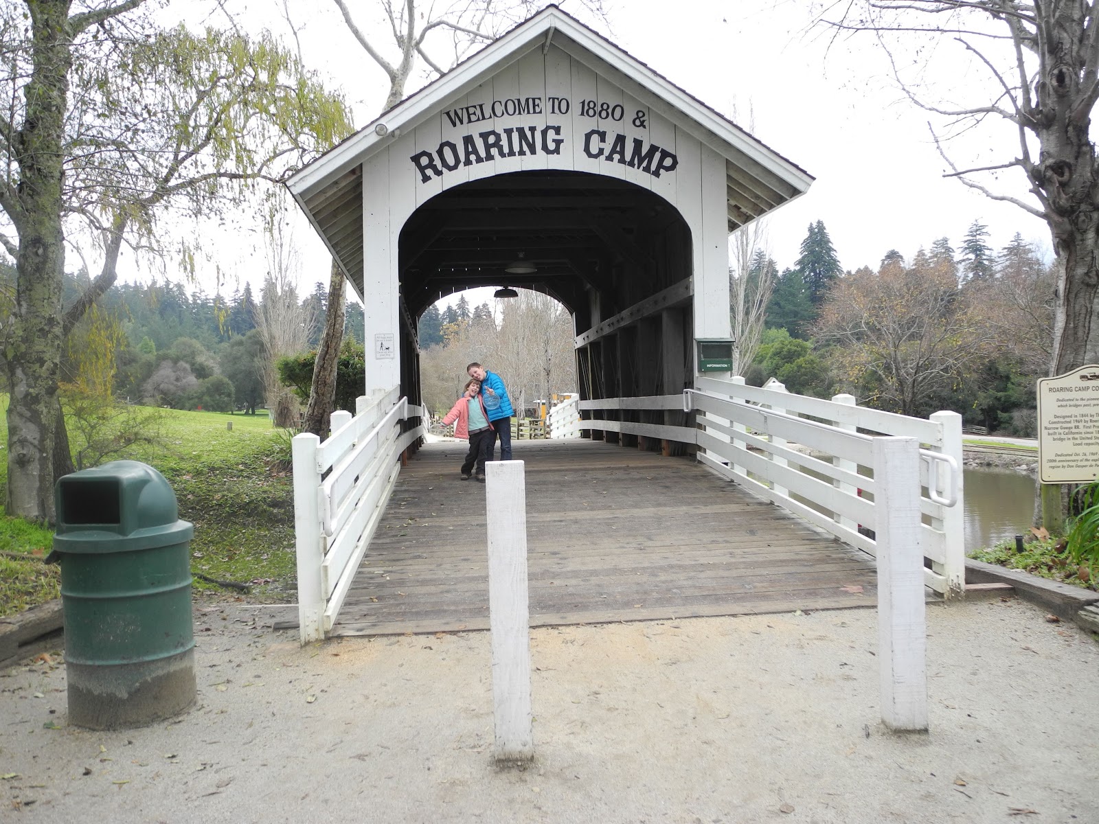 En los bosques de sequoias hay un tren turístico a vapor. Nos pareció bastante caro y hacía mucho frío, haremos el paseo en el verano. Igual recorrimos parte del parque. En el tren llevaban el material para construcción en la época de la fiebre del oro.